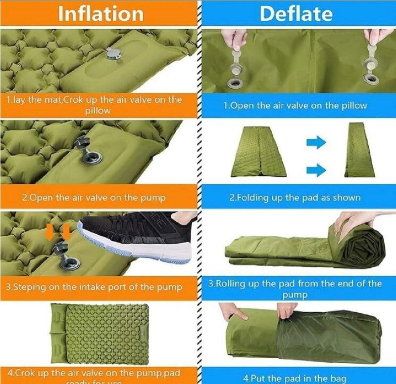 Colchoneta Autoinflable Doble con su Inflador Incorporado con el pie o mano.