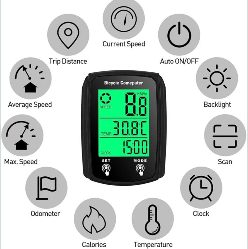Con su pantalla LED de 42 mm, podrás visualizar fácilmente la velocidad promedio y máxima durante tus recorridos. Su diseño compacto y ligero, con un peso de solo 100 g, lo hace perfecto para cualquier tipo de bicicleta.